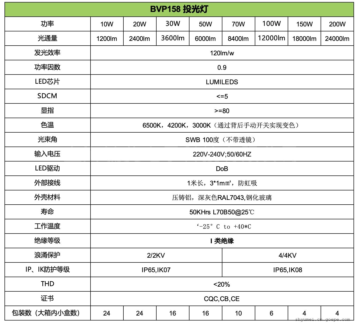 所 在 地: 上海宝山区 更新日期: 2025-02-05 详细信息| 询价留言品牌:飞利浦 型号:BVP158 200W 加工定制:否 输入电压:220 V LED灯珠颗数:300 光通量:24000 LM 显色指数:80 工作频率:50/60 Hz 外壳材质:铝 发光角度:100 度 工作温度:-20+45 尺寸:240*210*10.5 寿命:50000 H 重量:4 g 防护等级:IP65 用途范围:体育场馆,广告牌,码头,高杆灯 色温:3000K-4200K-6500K 功率:10W-20W-30W-50W-70W-100W-150W 流明:120lm/W 色温:3000K-4200K-6500K 功率:10W-20W-30W-50W-70W-100W-150W -
